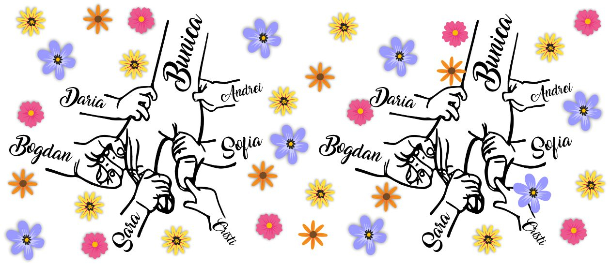 Cana poate fi personalizată cu numele dorite, care se pot schimba la alegere, devenind astfel un obiect unic, plin de semnificație. Fiecare mânuță reprezintă un suflet drag, iar mâna mare este centrul care oferă protecție, echilibru și iubire necondiționată.