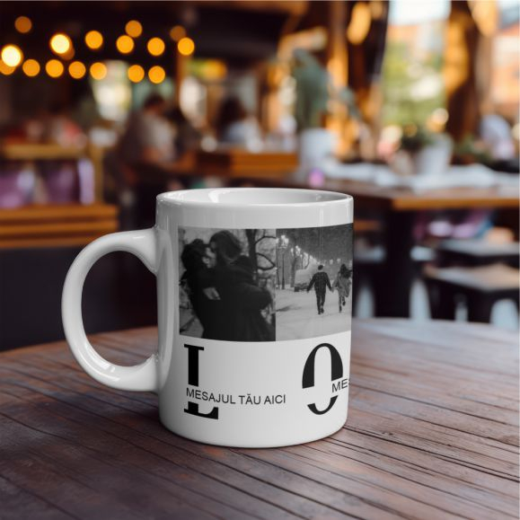 Creează o cană plină de emoție și semnificație! Această cană personalizată îți oferă libertatea de a adăuga un mesaj special și 4 imagini preferate, transformând-o într-un cadou unic și memorabil ✨