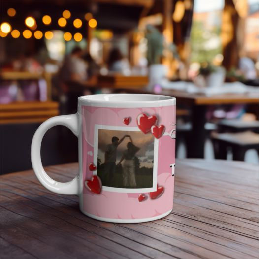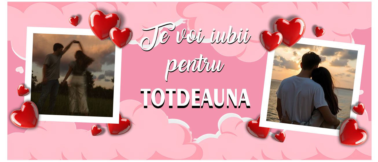 Spune „Te iubesc” în cel mai frumos mod posibil! Această cană personalizată afișează mesajul „Te voi iubi pentru totdeauna” și poate fi completată cu 2 imagini alese de tine, păstrând amintirile voastre într-un cadou romantic și memorabil 🥰.